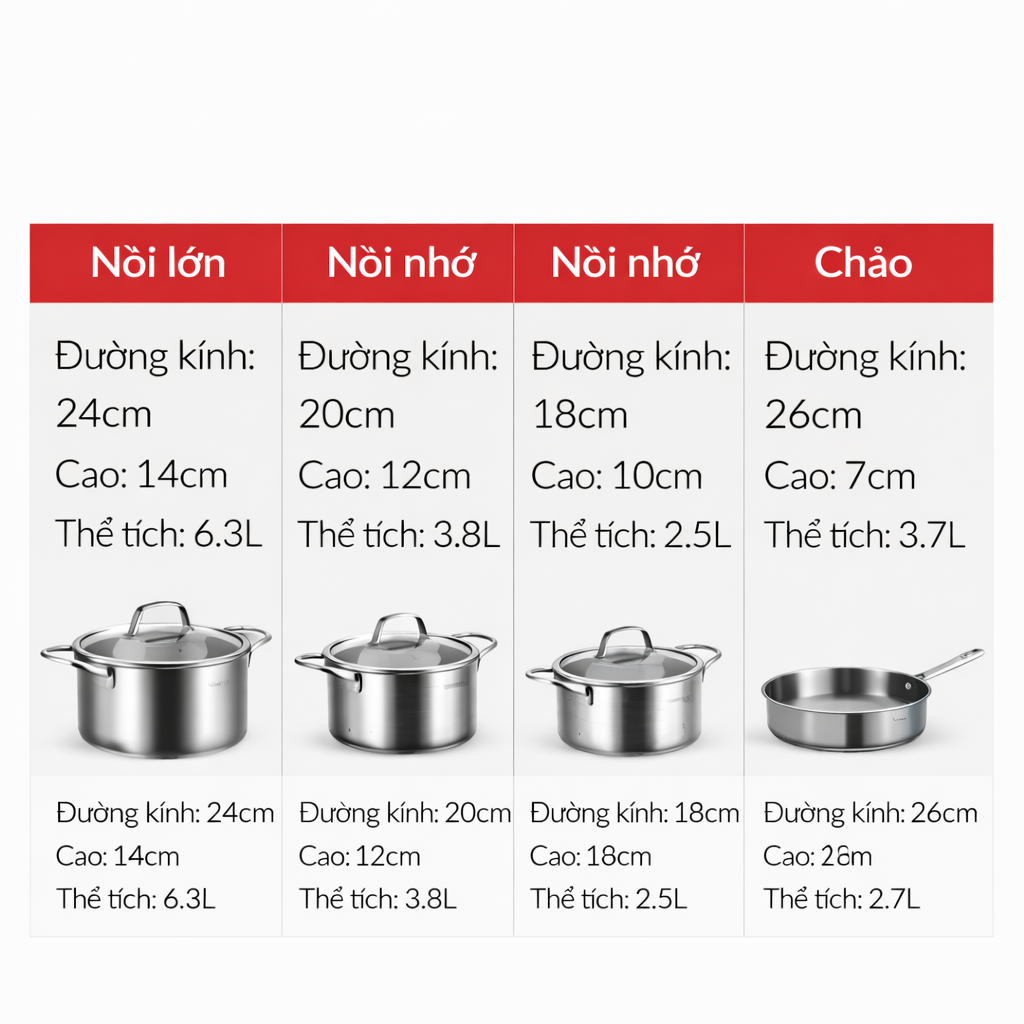 Bộ nồi Inox SUS 304 – 7 món
