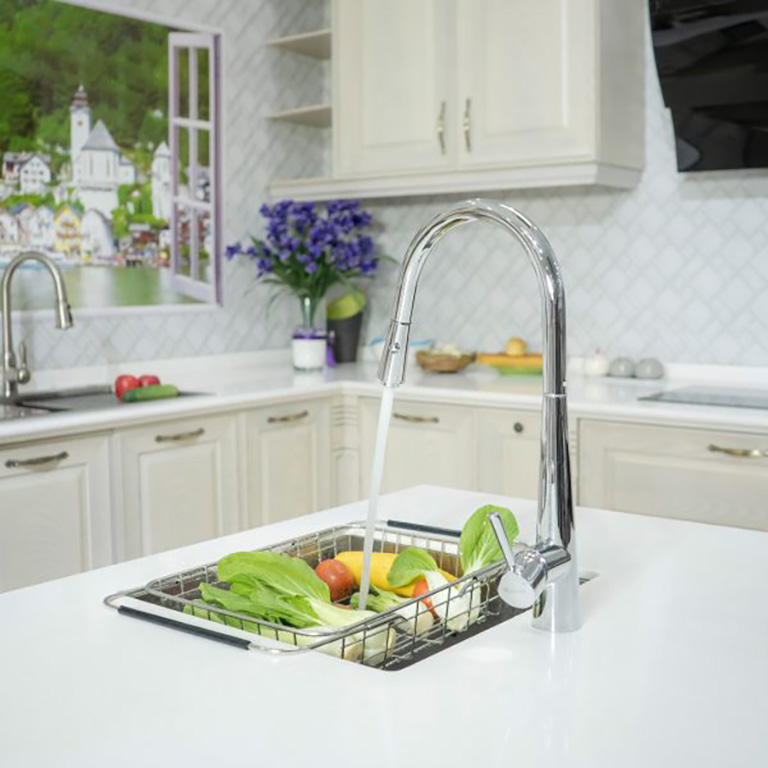 • Tay vòi ngang tối ưu không gian bàn bếp